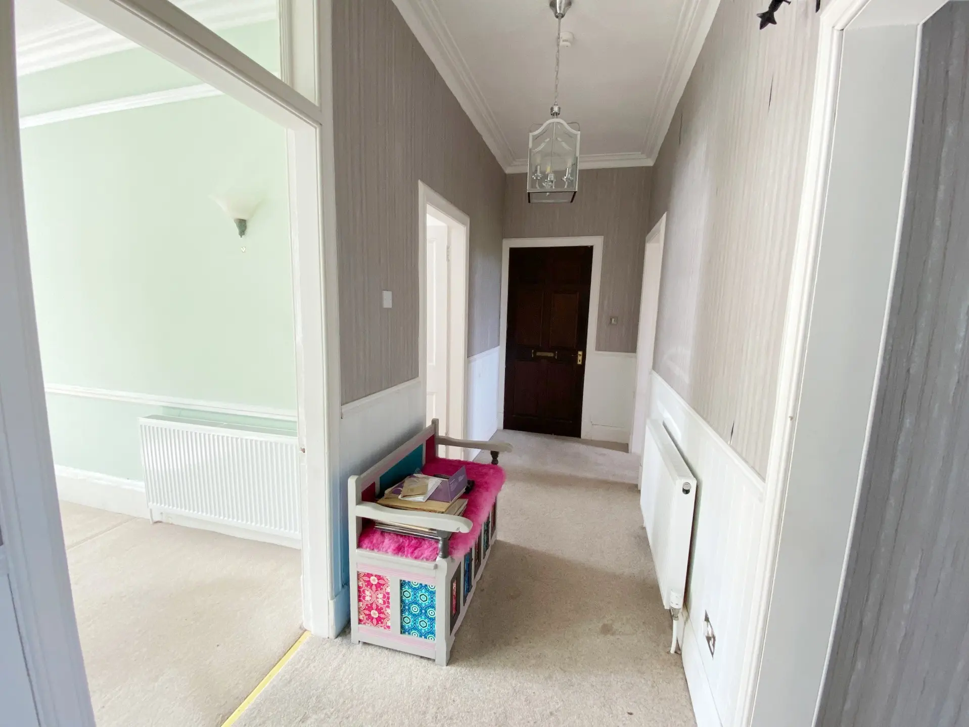 an outer hall with a door entry system, a reception hall with cupboard, an