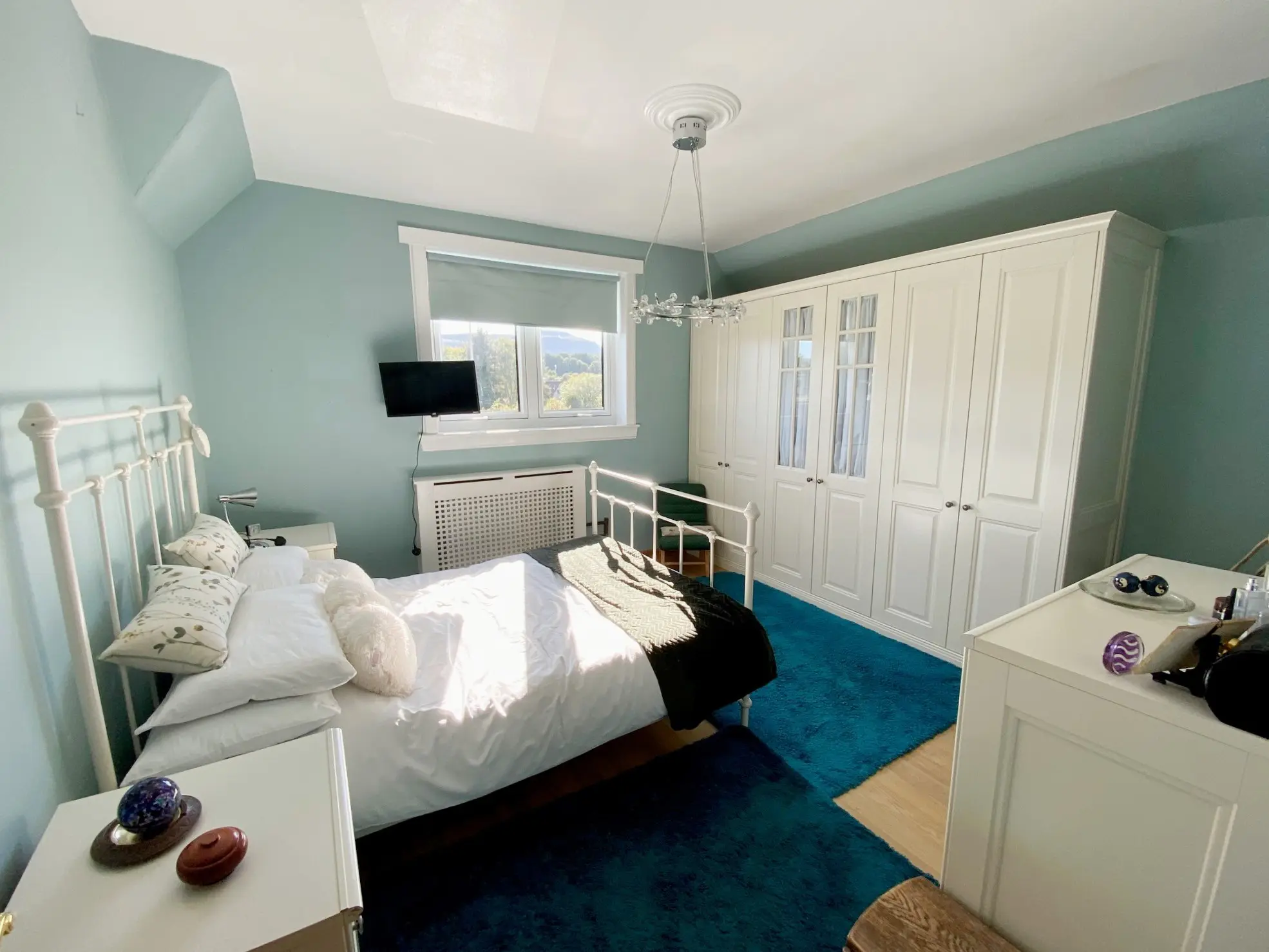 A spacious upper floor flat with lovely open outlooks, attractive rear gardens