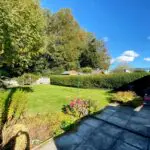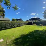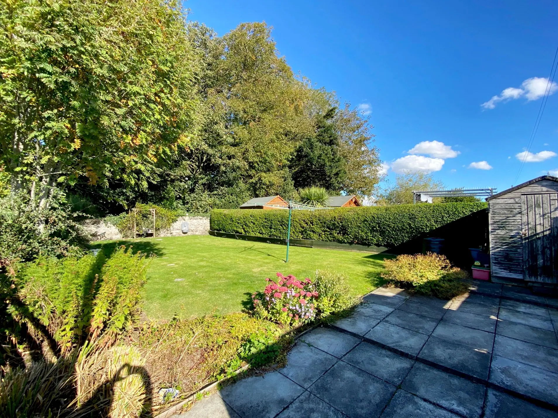 The rear gardens are mainly in grass with shrub bed borders and a storage