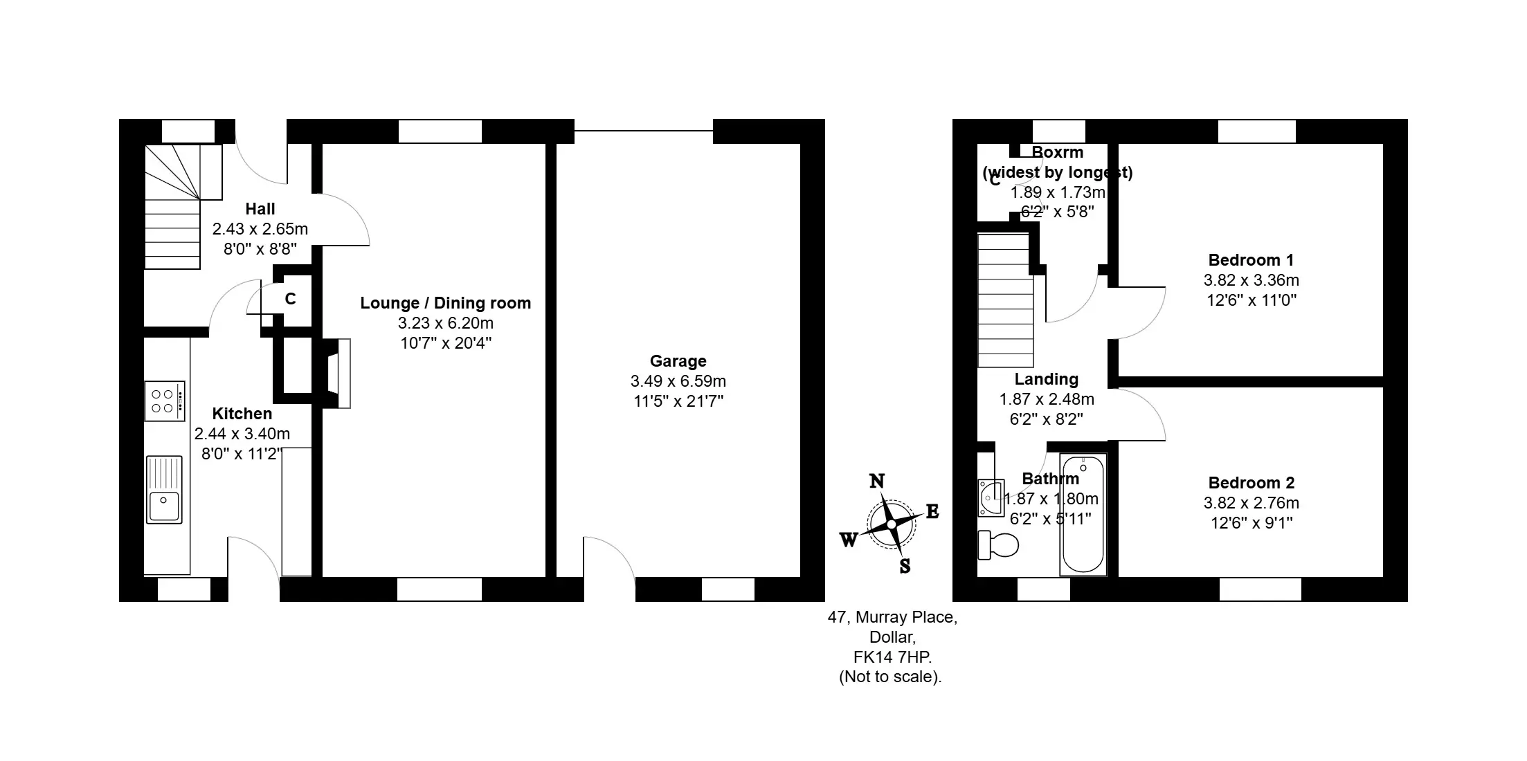 On entering Dollar via the B913 turn left at the T junction turn left onto Harviestoun Road. Turn third left into Murray Place and number 47 is at the very end of the cul-de-sac.