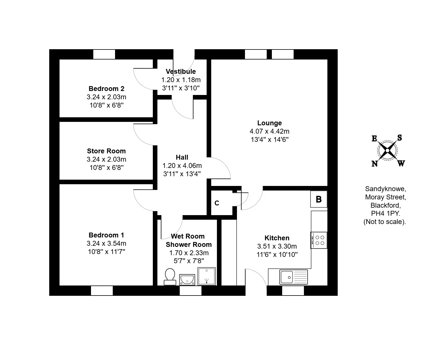 The accommodation comprises a vestibule, a reception hall, a spacious lounge, a fitted kitchen / appliances, 2 bedrooms, a store room and a wet room shower room.